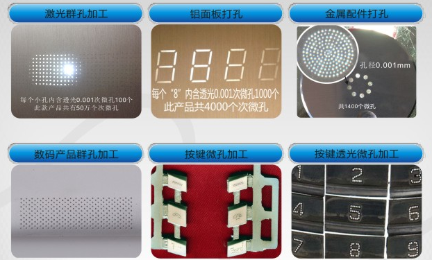 细孔激光打孔机广泛应用于:汽车喷油嘴,雾化喷嘴,发动机喷油嘴,喷油嘴,喷气嘴,微孔板,穿孔板,吸音板,微孔过滤器,微孔过滤网,微孔筛,不锈钢过滤网,滤清器,激光打孔网,喷枪喷嘴,细孔穿孔,吸嘴,雾化器等。